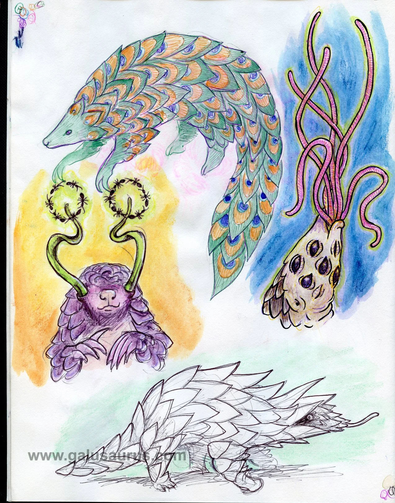 The beginning of the madness! I can’t recall the precise moment I thought of “Mutation March,” but at some point I realized how much I enjoy drawing surreal animals and beasts, so why not lean into that. I had always liked the idea of those daily month-long art challenges, but often struggled to finish them. I asked around on social media for animals suggestions and compiled a finalized list with the simple instructions, “draw some animals, but make ‘em weird.” This gave me the predictable routine of a daily challenge and limited word prompt, but with the wildly open-ended playing field of surreal inspiration.